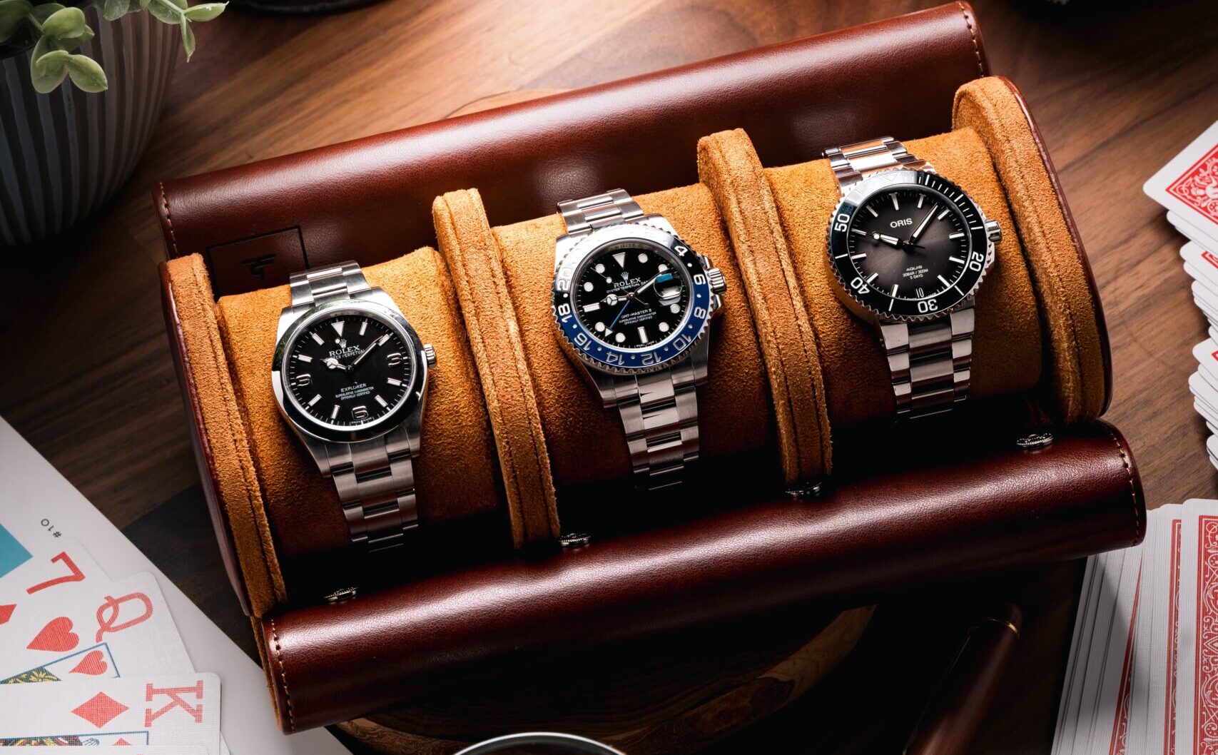 Dark Brown Triple Slot Watch Roll Travel Case
